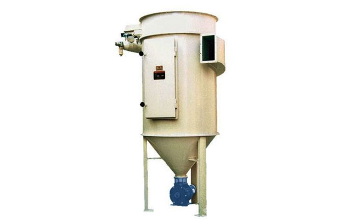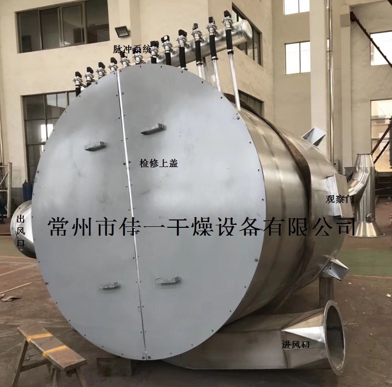 含塵氣體從進氣口進入下箱體后,部分沉降,輕微粉塵浮動時被濾袋阻留。凈化空氣透過濾袋,經文氏管進入箱體,從出氣口排出。隨著積附在濾袋外壁的粉塵不斷增加,為了使設備阻力維持在限定(一般為100-150毫米水柱)的范圍內,必須定時清除積附在濾袋外壁的粉塵,清灰是由控制儀順序觸發各控制閥,開啟脈沖閥,使氣包內的壓縮空氣由噴吹管噴出(一次風)通過文氏管誘導數倍于一次風的周圍空氣(二次風)進入濾袋,使濾袋瞬間急劇膨脹并伴隨著氣流的反作用,被抖落在粉塵落入灰門經排灰閥排出機體。